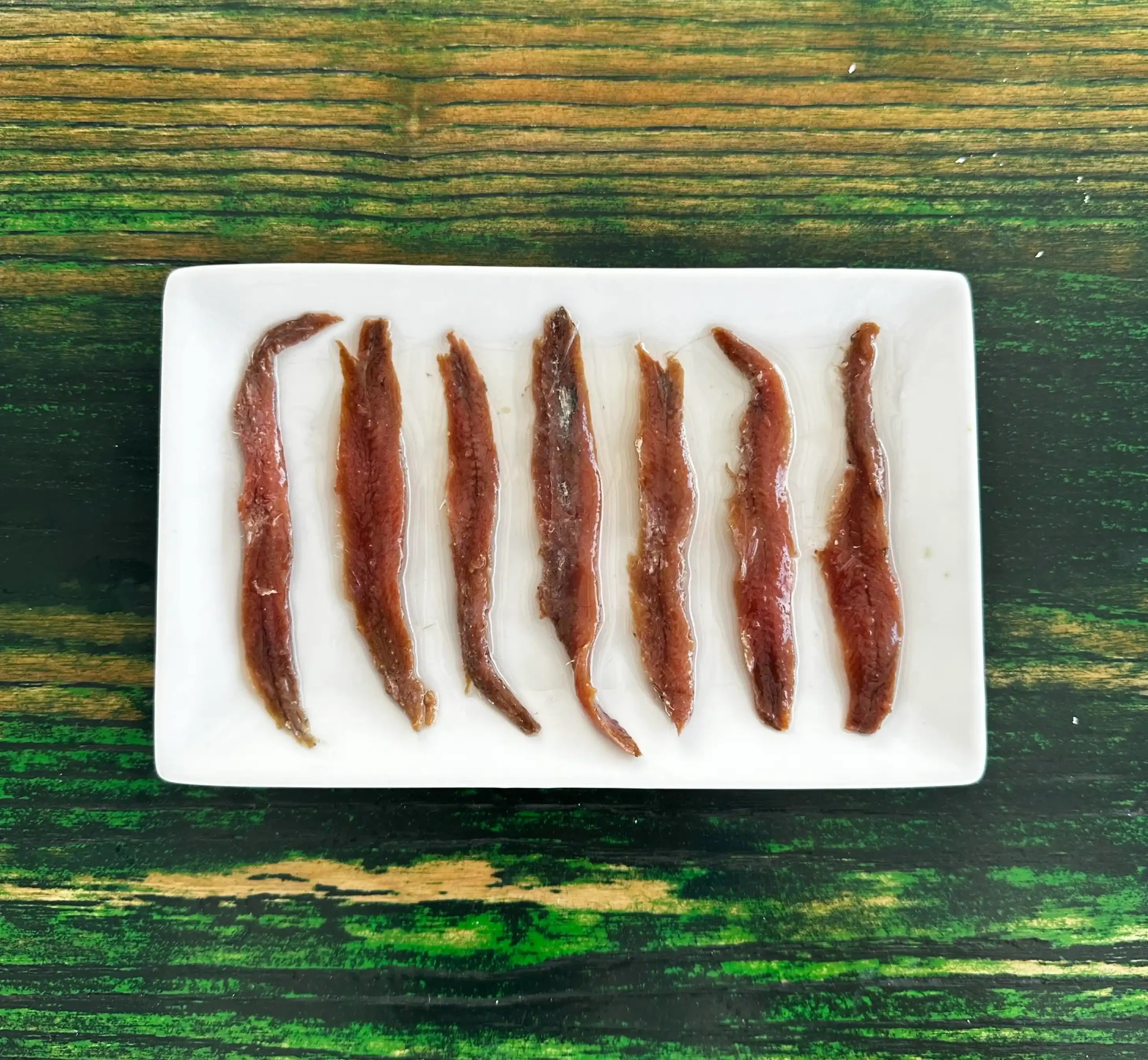 Anchoas en aceite, ajo, aceite de oliva virgen extra, sal.